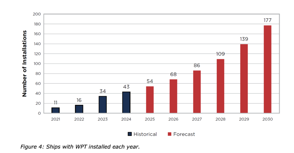 volumes, as it generates no direct emissions, and which also decouples sustainability efforts from the price of green fuels, which are generally available at a premium accounting for their CO2 abatement cost. Consequently, the next five years are forecast to witness a pronounced uptick in WPT installations